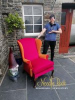 An upright orthopaedic chair given a makeover for a customer in Llandre.