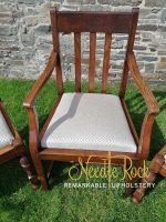 Set of 4 Oak dining chairs reupholstered in 100% wool fabric